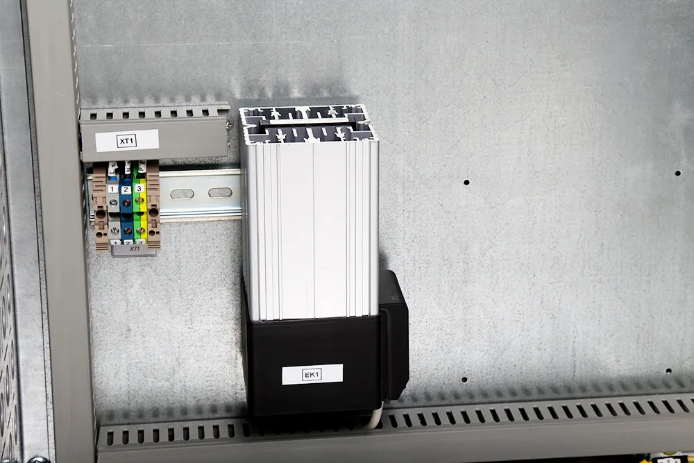 Оборудование крепится на монтажной панели, выполненной из оцинкованной стали толщиной 2,5 мм, в которой предусмотрены отверстия для установки дополнительных DIN-реек.